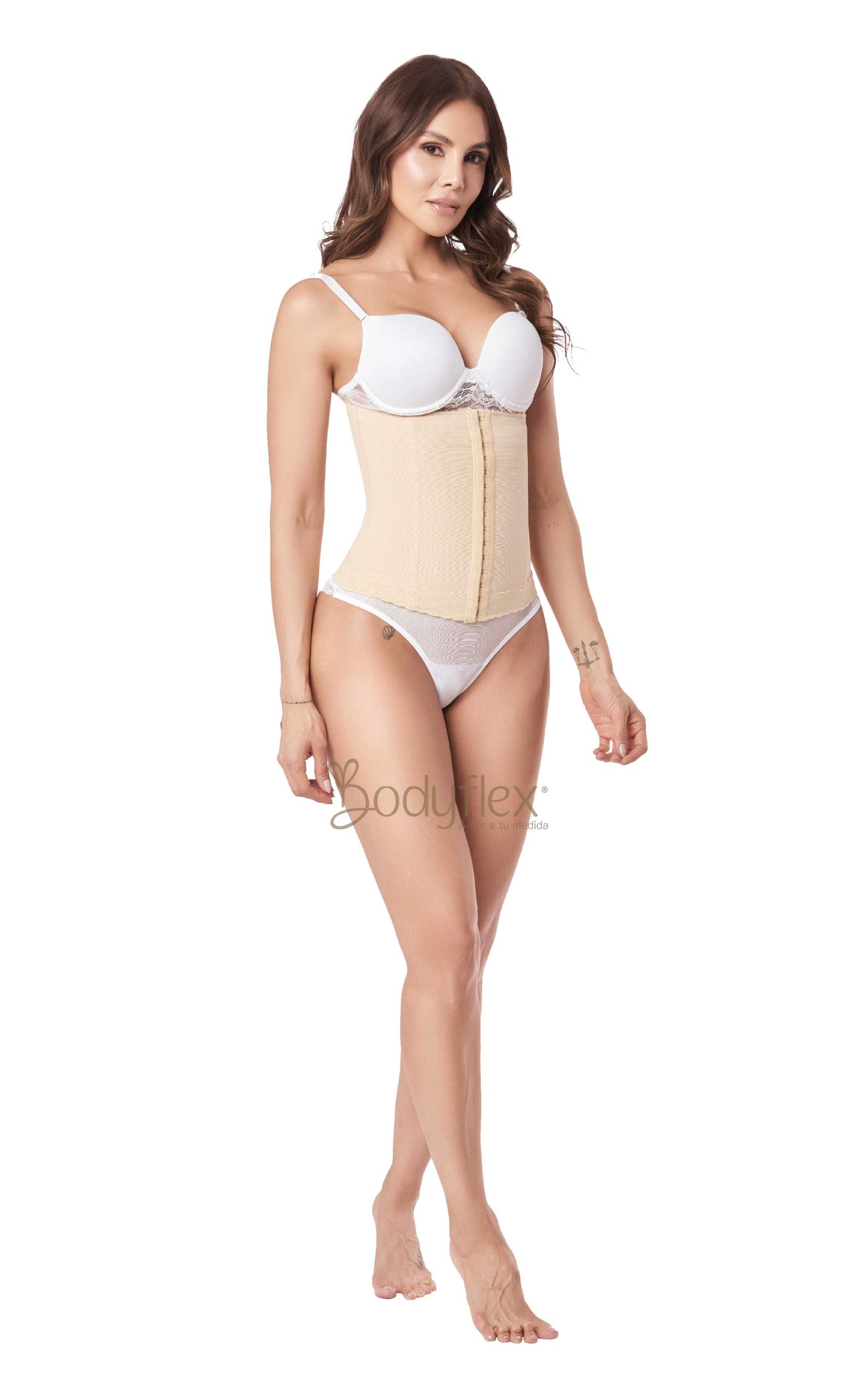 cinturilla color beige strapless con varillas semiflexibles.