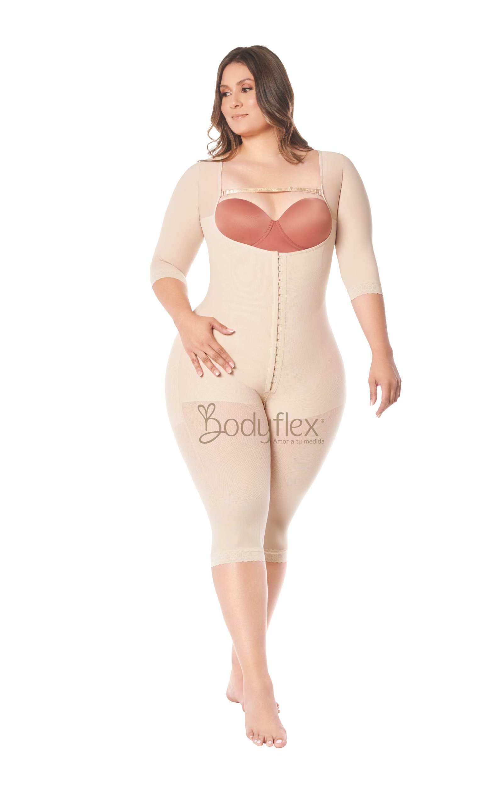 Presentamos nuestra faja color beige, diseñada para proporcionar estilo y comodidad en cualquier momento del día. Este producto combina características excepcionales, como su espalda completamente cubierta, sus mangas tres cuartos y el diseño de senos libres que ofrece soporte mientras te permite usar tu sujetador preferido. Ideal para adaptarse a tu rutina diaria sin sacrificar practicidad y confort.
